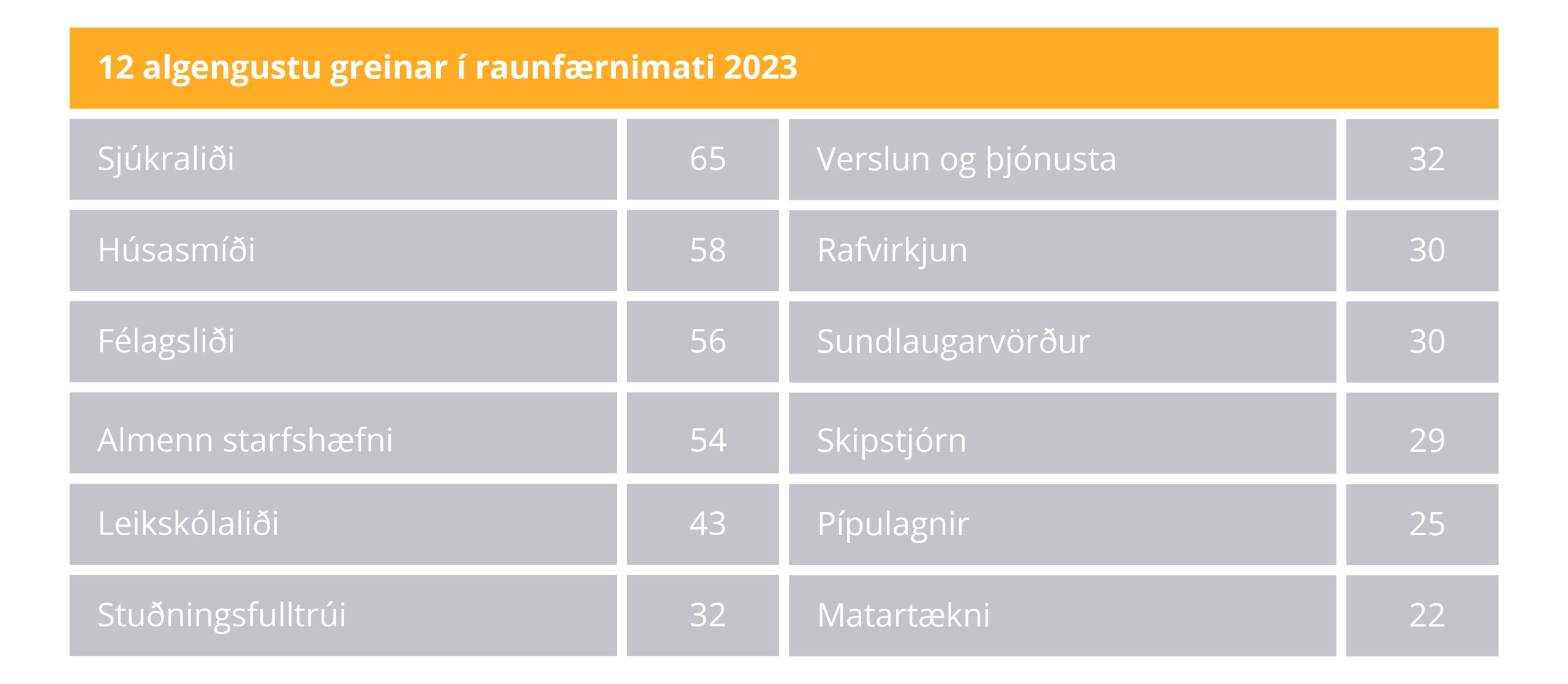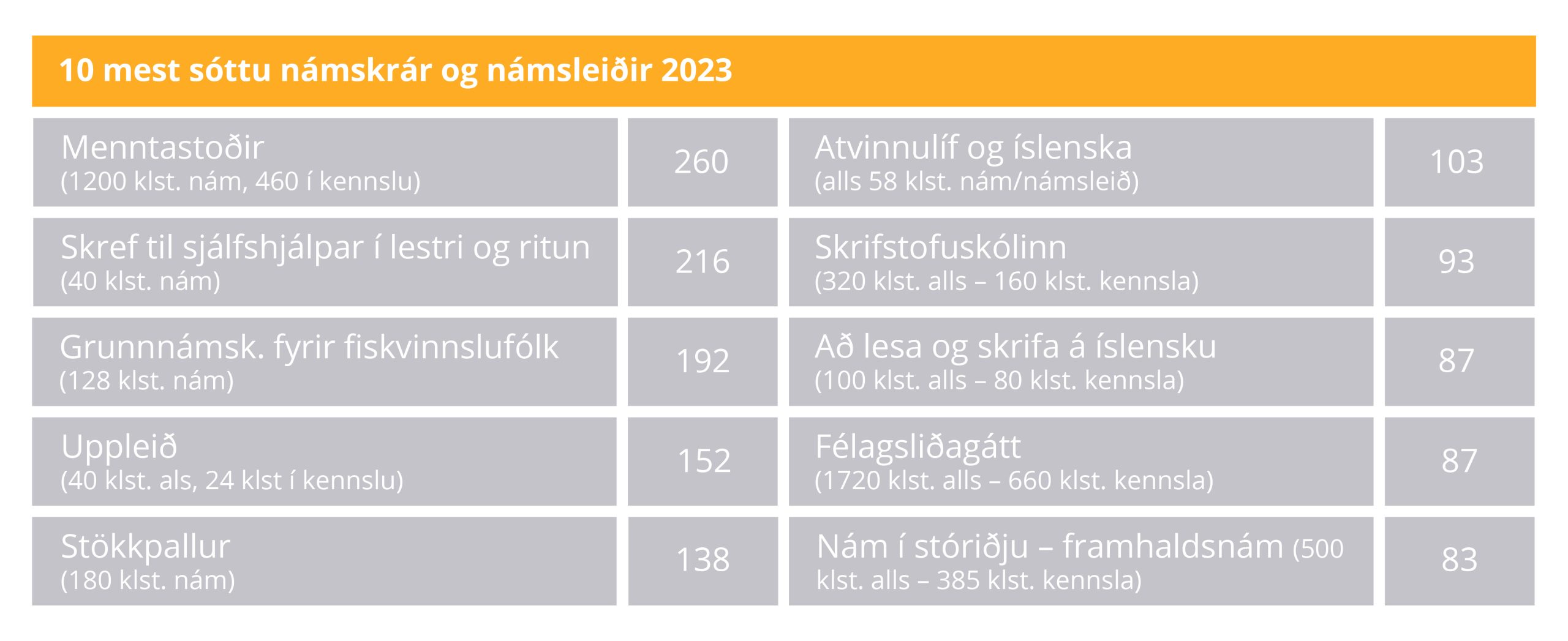 Menntastoðir eru eina námskráin af þeim 10 mest sóttu árið 2023 sem fellur undir hefðbundið bóklegt nám en aðrar eru starfstengdar eða til uppbyggingar á færni og sjálfseflingu einstaklinga.
