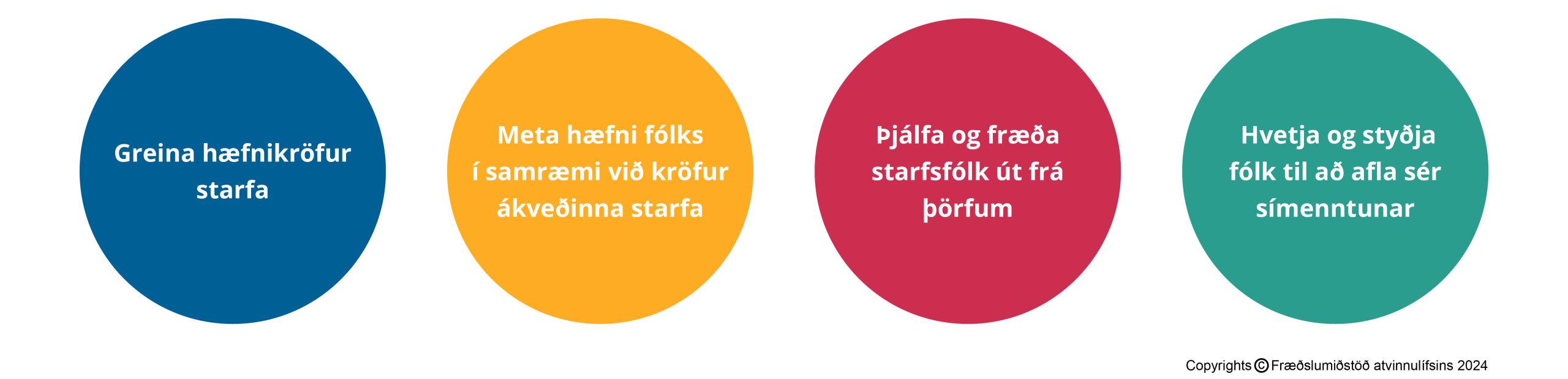Fræðslumiðstöð atvinnulífsins hefur þróað aðferð við að greina lykilhæfni starfa. Slík greining kallast hæfnigreining starfs og mótar hún starfaprófíl sem er grunnur að uppbyggingu náms eða raunfærnimats . Hæfniþættirnir sem FA notar við hæfnigreiningu koma frá kanadíska ráðgjafarfyrirtækinu HRSG sem hefur unnið að þróun þeirra í meira en 30 ár en þeir lýsa á hlutlægan hátt mikilvægri hæfni fyrir atvinnulífið. FA hefur þýtt og aðlagað efnið að íslenskum aðstæðum.
