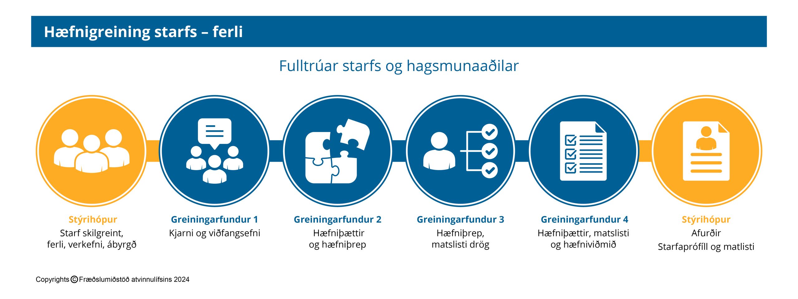 Ávallt er fylgt skilgreindu ferli við hæfnigreiningu samkvæmt eftirfarandi yfirlitsmynd:
