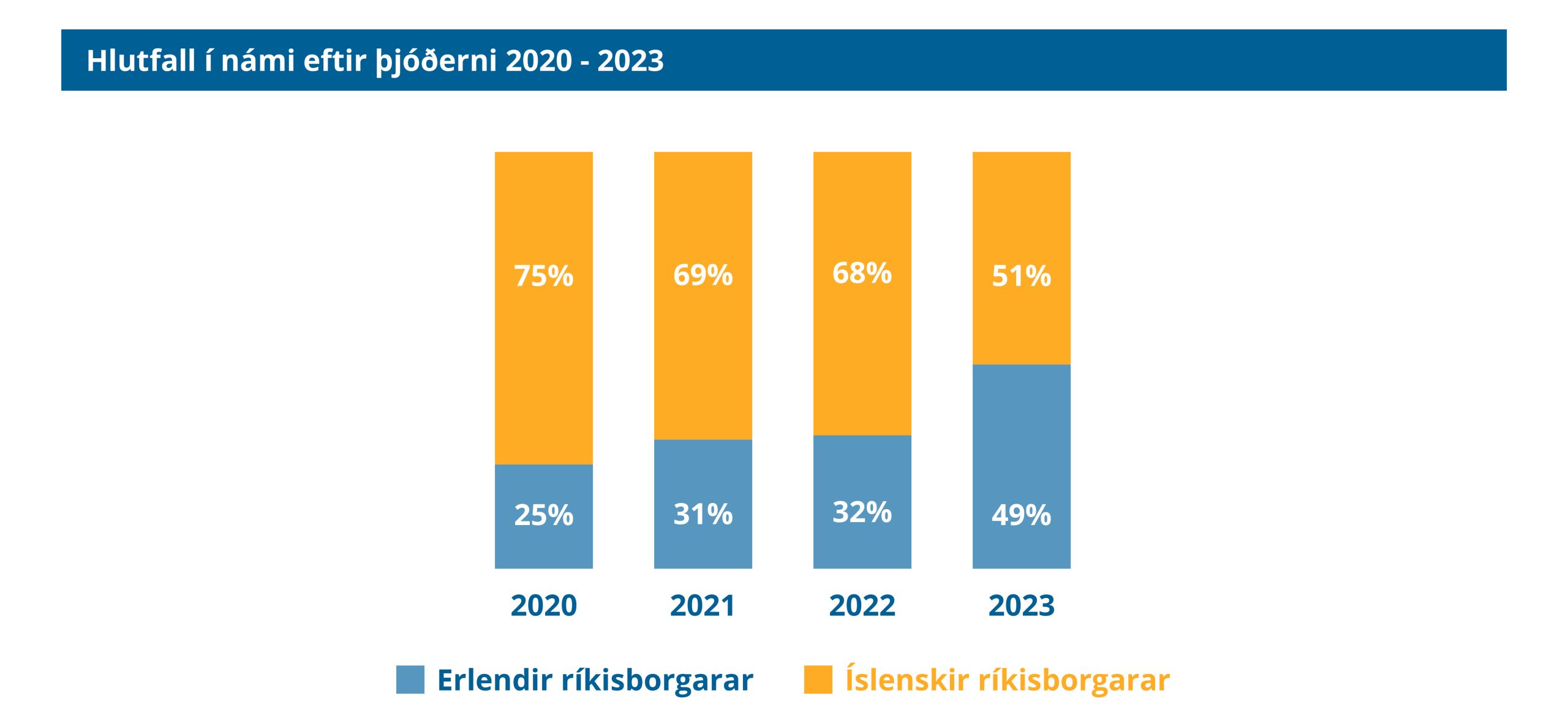 Hlutfall erlendra ríkisborgara er 49% á móti 51% íslenskra þegar heildarfjöldi er skoðaður. Af þessum tölum sést glögglega að mikil þörf er fyrir framboð á námi fyrir bæði íslenska sem erlenda borgara. Erlendir ríkisborgarar sækja einkum í ýmis starfstengd námsframboð en auk þess í íslensku sem er þá ýmist starfstengt mál eða almenn íslenska. Um 20% námskráa árið 2023 voru kenndar á öðru tungumáli en íslensku.