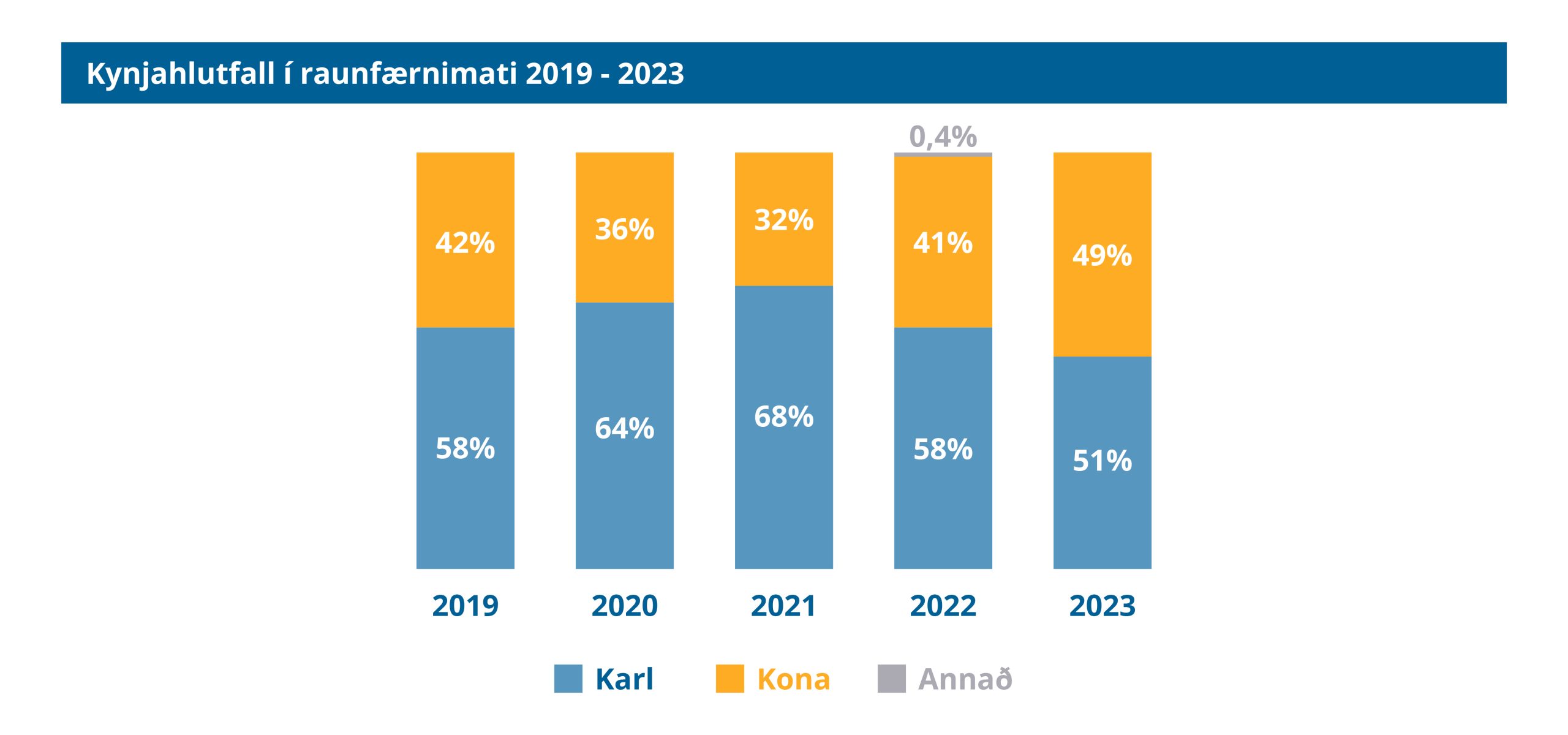 Kynjahlutfall hefur haldist nokkuð jafnt í gegnum árin en konum er þó að fjölga sem skýrist að mestu af því að konur sækja meira í raunfærnimat en áður.