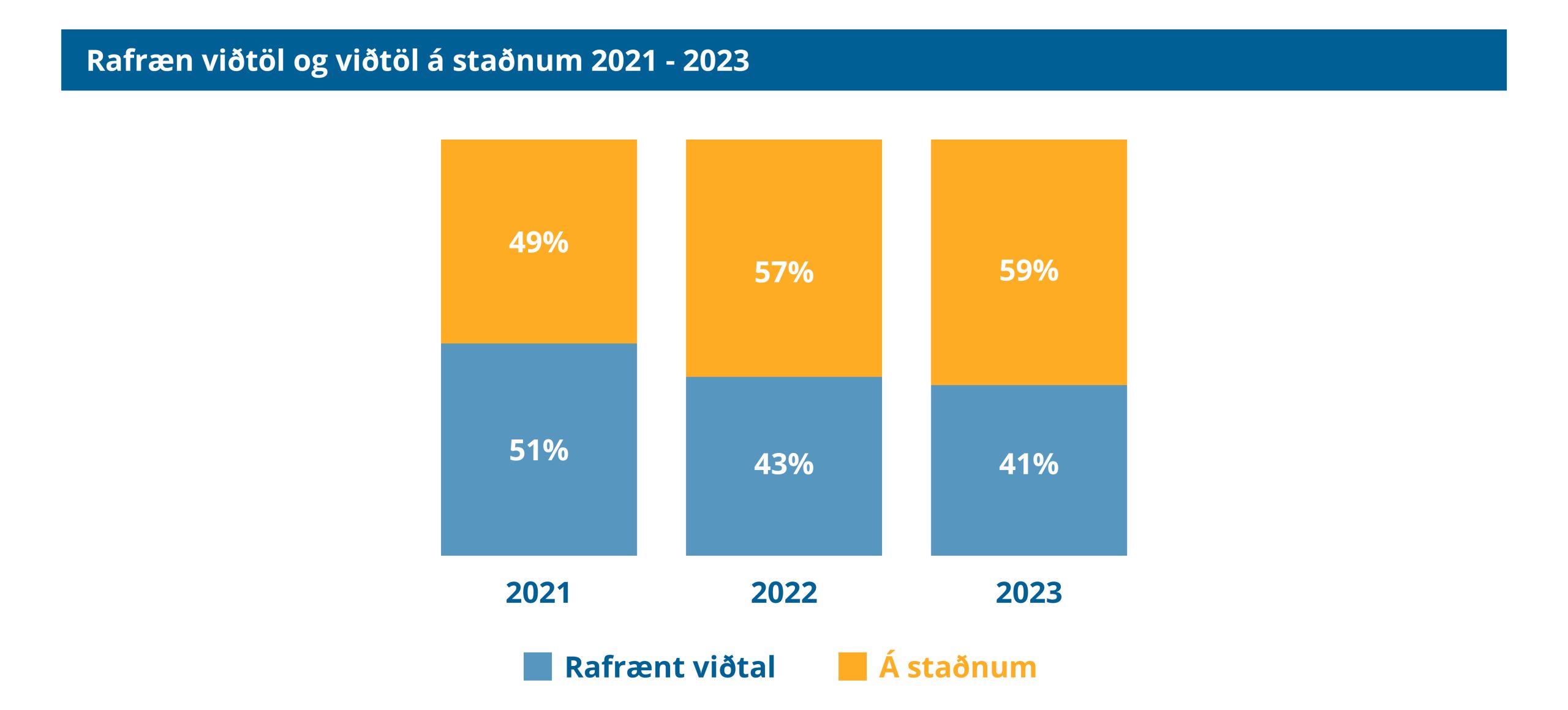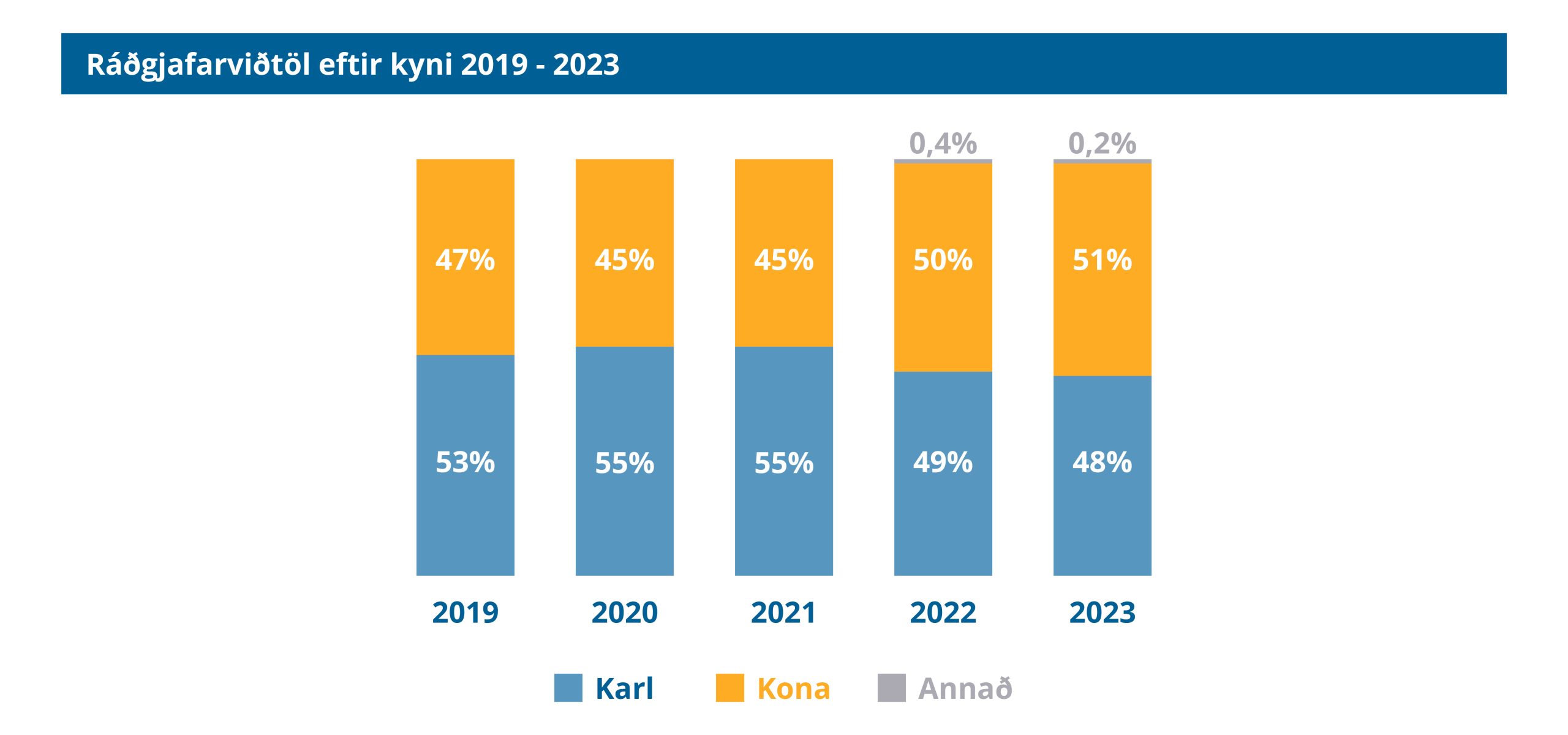 Rafræn viðtöl voru 41% af heildarfjölda viðtala á árinu og hefur fækkað um 10% frá því 2021 þegar COVID stóð sem hæst. VISKA í Vestmannaeyjum notar nánast eingöngu rafræn viðtöl og einnig er meirihluti viðtala rafrænn hjá IÐUNNI-fræðslusetri (77%). Kynjahlutföll eru nokkuð jöfn. Flest sem sækja ráðgjöfina eru á aldrinum 26-35 ára eða 36% og þar á eftir 36-45 ára eða 24%. Þá hafa flest í hópnum hafið nám á framhaldsskólastigi en ekki lokið því eða 49,34% og þau sem eingöngu höfðu lokið grunnskóla voru 21,52%. Alls 80% þeirra sem koma í ráðgjöf eru í markhópi framhaldsfræðslunnar.