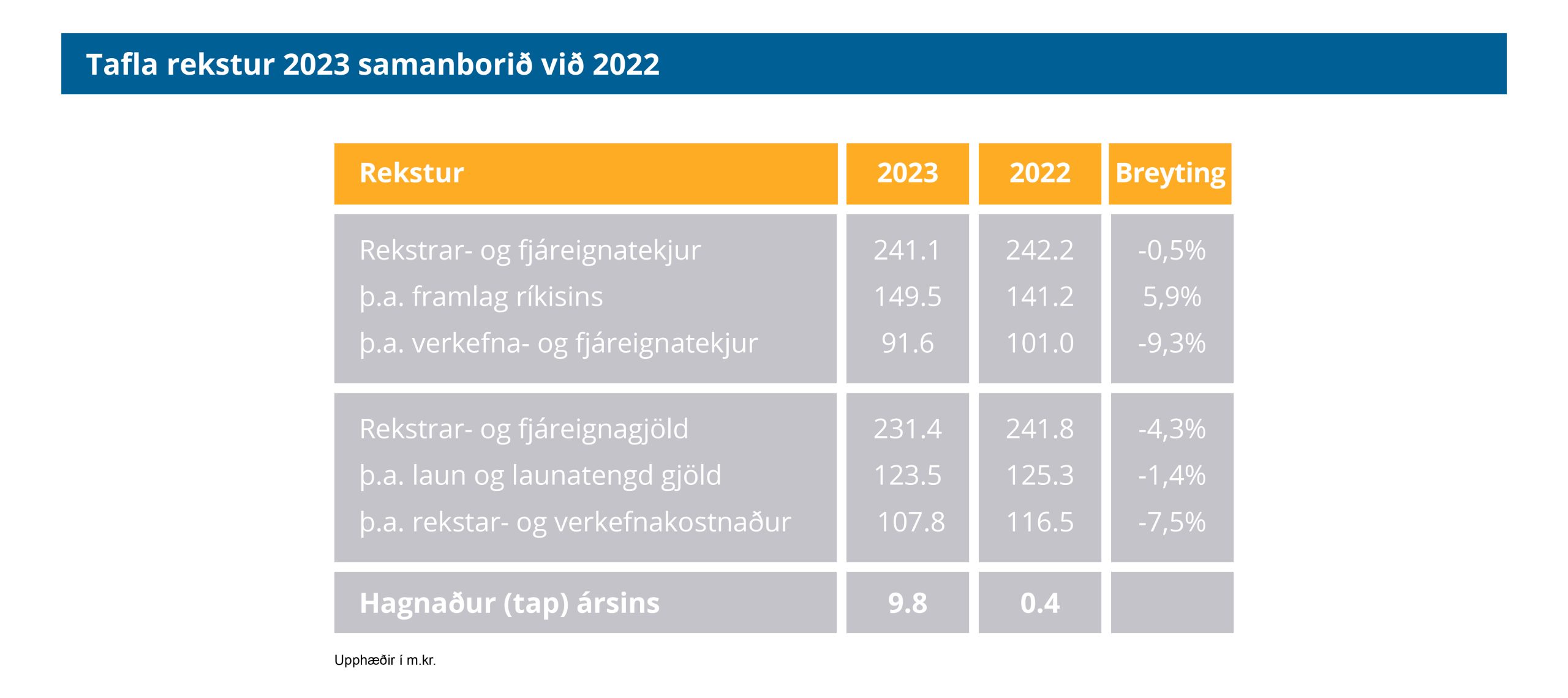 Árið 2023 var rekstrarlega krefjandi fyrir félagið. Við upphaf árs lá fyrir að komið var að ögurstundu í rekstri FA. Þungur rekstur nokkur ár á undan höfðu gert það að verkum að mjög hafði gengið á eigið fé félagsins og geta þess til að takast á við óvænt útgjöld eða rekstraráföll orðin takmörkuð. Því var í áætlunum lagt upp með stíft aðhald og kostnaðarvitund fyrir árið 2023. Áætlanir gerðu ráð fyrir jákvæðum rekstri og niðurstaða ársins sýnir að markmið ársins hafa gengið eftir. Niðurstaðan er verulega jákvæð fyrir félagið, en rekstrarniðurstaða ársins er 9.8 milljónir í hagnað. Á árinu náðist samkomulag um að vefurinn Næsta skref færi til Miðstöðvar menntunar og skólaþjónustu og starfsmaður sem meðal annars hafði sinnt honum flyttist með. Aðrar breytingar í starfsmannahaldi og frekari hagræðing í rekstri skila þessum árangri. Þannig fækkaði ársverkum milli ára um 2,5 og skilar það sér í að launakostnaður stendur nánast í stað milli ára.