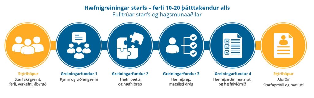 Hæfnigreiningar eru framkvæmdar af sérfræðingum FA ásamt stýrihópi sem samanstendur af haghöfum í tengslum við viðkomandi starf, alls 5-7. Til þátttöku á greiningarfundum er kallaður til stærri hópur, 10 til 20 manns.